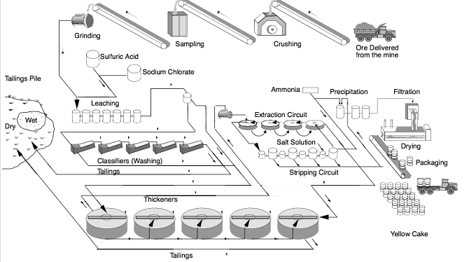 Fig. 2: Schematic of the Uranium milling process. [2,7] (Courtesy of the U.S. Energy Information Administration)